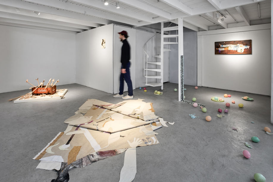 O tempo a fumar a pintura, título da mostra, remete a um desenho do artista britânico William Hogarth realizado em 1764. Nele, o velho deus Cronos, com barba e imensas asas, sentado sobre fragmentos de estátuas antigas, fuma com um cachimbo uma imensa pintura, da qual nada se vê além de fumaça e moldura que a limita inutilmente. A obra, que é uma espécie de alegoria do tempo, capaz de tudo desintegrar, impossibilita a sombra, se recusa à materialidade dos corpos, mas serve como porta de entrada para algumas obras. De um lado, Feira do Cadouço, de Artur Ferreira, frutas de cera moldadas sobre limões, que evocam tanto o tempo agindo sobre as clássicas naturezas-mortas, que nos lembram da fugacidade da vida, quanto as antigas máscaras mortuárias de cera, que buscavam eternizar a fisionomia de um sujeito já morto. De outro, Beba Crush, de Matheus Chiaratti, parece reunir, como relíquias, as flechas que atingiram o corpo de São Sebastião, ou aquelas guardadas no arsenal de Cupido. De maneira análoga à fumaça, as obras falam, cada uma a seu modo, sobre presenças e ausências, tanto pelo molde que preserva, de maneira frágil, uma existência desaparecida, quanto pela relíquia que nos conecta com um corpo já perdido.